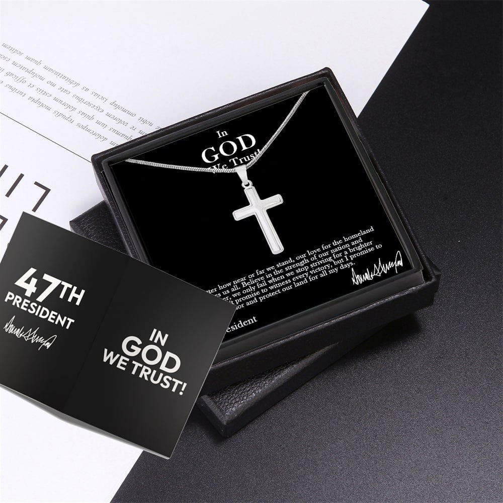 Sterling Silver 47 President “In God We Trust” Cross Necklace – A Symbol of Faith